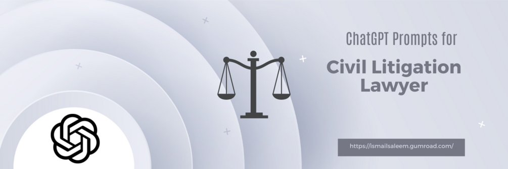 Unlock your litigation potential with "ChatGPT Prompts for Civil Litigation Lawyers"—a powerful e-book designed to boost your strategic thinking, streamline case preparation, and strengthen legal arguments. Whether you're handling contract disputes, tort claims, or complex civil procedures, this guide gives you the right prompts to deliver results in and out of the courtroom.