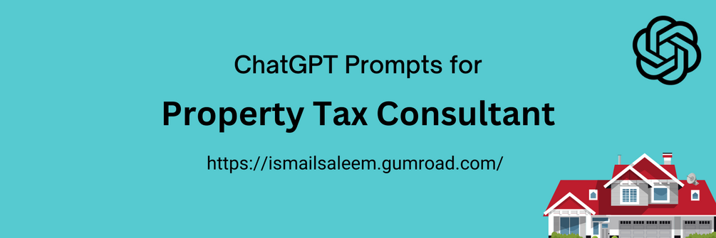 Elevate your property tax consulting services with specialized ChatGPT prompts. Designed to simplify tax assessments, valuation, and appeals, this resource will help you deliver more accurate and efficient services to your clients. Perfect for property tax consultants seeking to optimize their workflow and improve client outcomes.