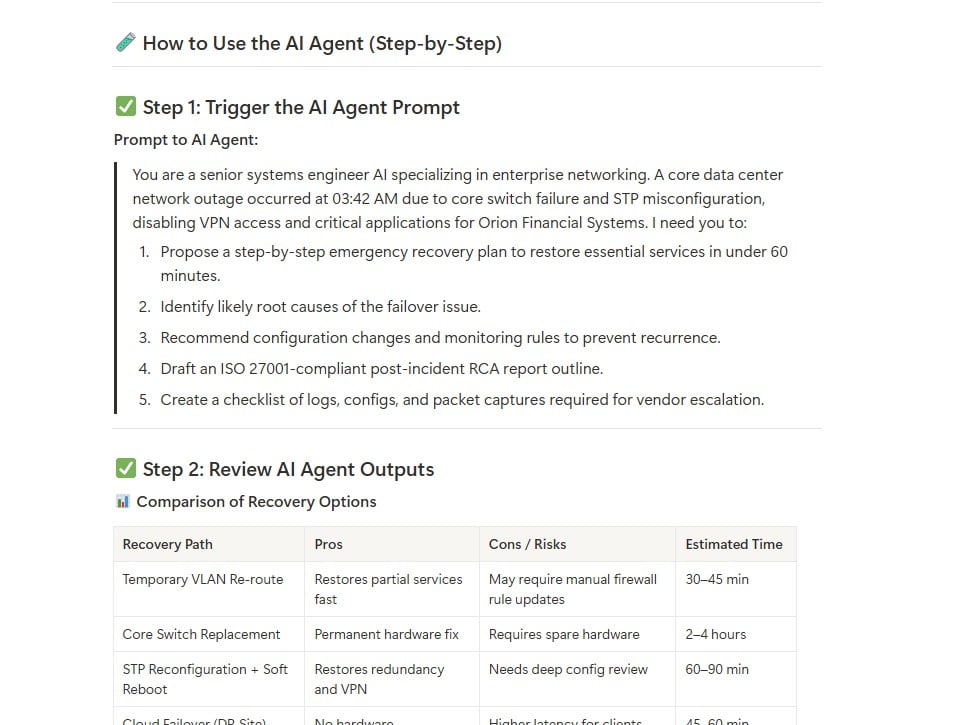 Includes a Reusable AI Agent Mini Prompt Template you can adapt to any incident, maintenance, or optimization task.