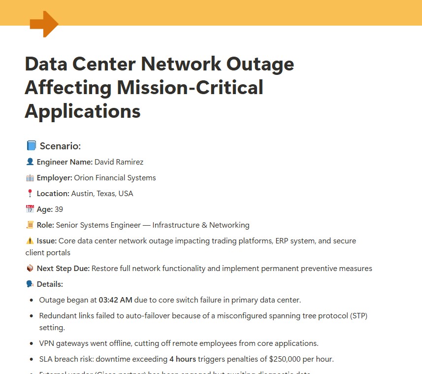 Each scenario is professionally crafted for day-to-day use in IT infrastructure, networking, cloud, and enterprise systems — including diagnosis, recovery, prevention, and optimization strategies.