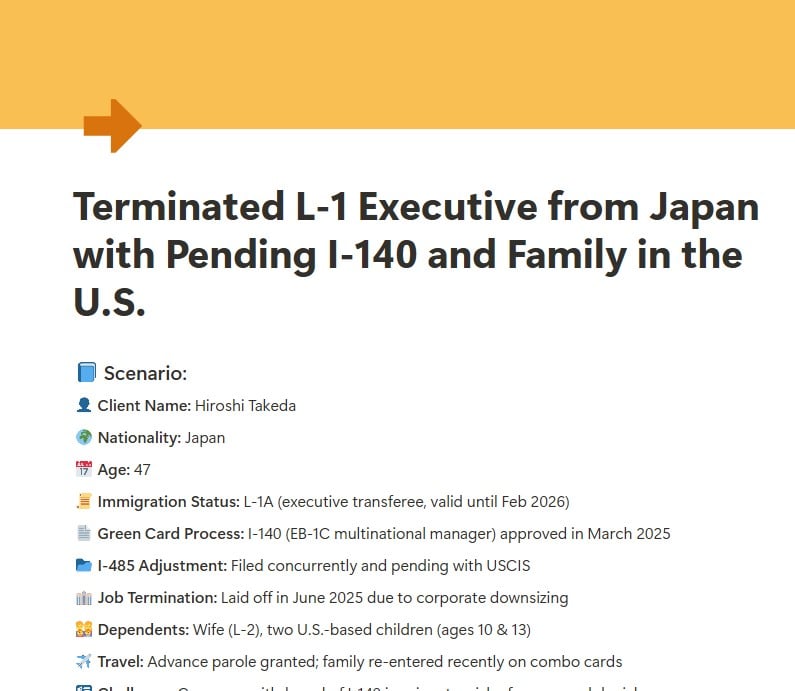 📍 Terminated L-1 exec with pending I-485 and employer withdrawal