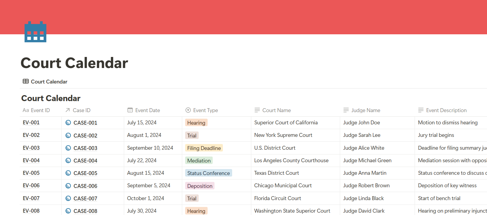 Notion Template for Court Calendar