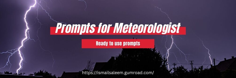 #ChatGPTPromptsForMeteorologists #Meteorology #WeatherForecasting #ClimateAnalysis #WeatherPatterns #SevereWeather #AtmosphericScience #ClimateChange #WeatherModels #MeteorologicalData #WeatherPrediction #StormTracking #TemperatureAnalysis #HumidityLevels #WeatherInstrumentation #ClimateTrends #WeatherReporting #ChatGPT #PromptEngineering #Prompt